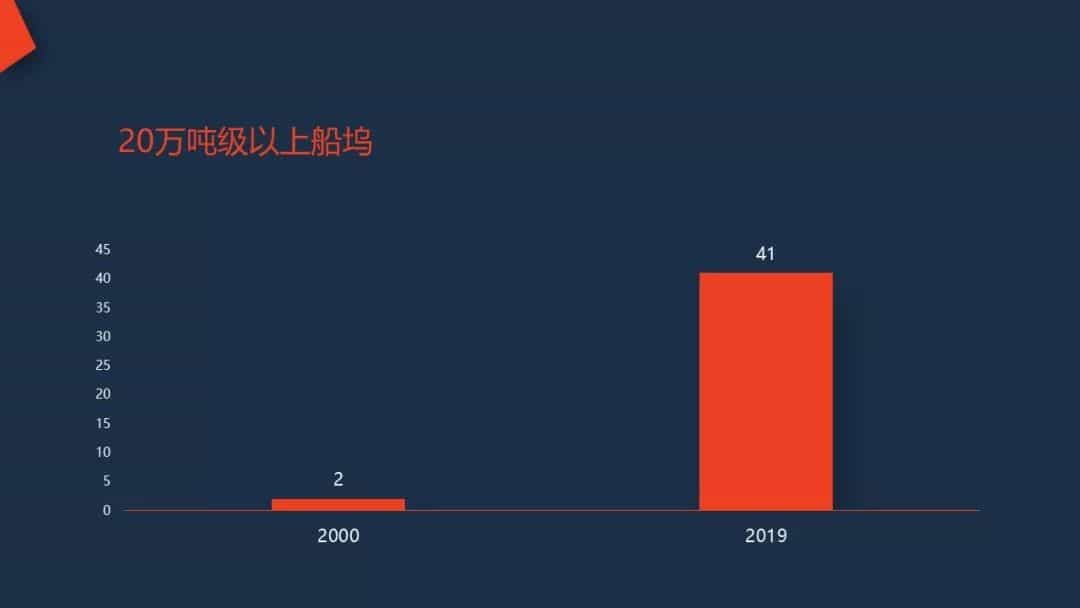 2001年開始,中國船舶工業進入了高速發展期,據統計,2000年,我國20萬噸以上船塢僅有2座,2019年,20萬噸級以上船塢達到41座,其中50萬噸級船塢6座。