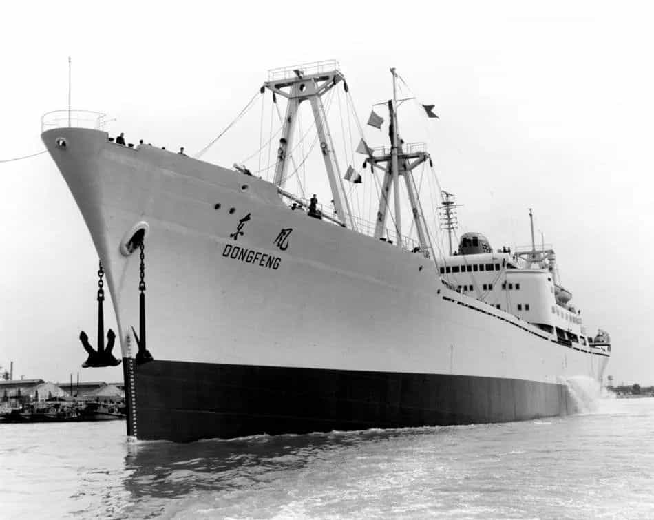 1965年12月31日,中國第一艘萬噸級遠洋貨船“東風”號在江南造船廠建成交付。她是中國自行設計,材料、設備基本立足國內生產制造的第一艘萬噸級遠洋貨船,集中反映了當時中國船舶設計、制造水平以及船舶配套生產能力。