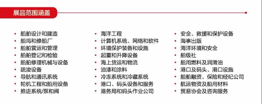 關(guān)鍵字延伸:船舶設(shè)計(jì)和建造、船塢和修船廠、船舶營運(yùn)和管理、船舶登記和檢驗(yàn)、船舶修理機(jī)械與設(shè)備、疏浚設(shè)備、導(dǎo)航和通訊系統(tǒng)、輪機(jī)工程和船用設(shè)備、推進(jìn)系統(tǒng)/泵和閥、海洋工程、計(jì)算機(jī)系統(tǒng)、網(wǎng)絡(luò)和軟件、環(huán)境保護(hù)裝備和設(shè)施、起重和升降設(shè)備、海上貨運(yùn)和物流、油漆和涂料、冷凍系統(tǒng)和冷藏系統(tǒng)、港口,碼頭設(shè)備和服務(wù)、港務(wù)局和碼頭作業(yè)公司、安全,救援和保護(hù)設(shè)備、海事出版、海洋環(huán)境和安全、船級(jí)社、船用燃料及潤滑油、港口及碼頭,港口設(shè)備、船舶融資、保險(xiǎn)和經(jīng)紀(jì)公司、船運(yùn)物資及船用材料、貿(mào)易協(xié)會(huì)及咨詢服務(wù)