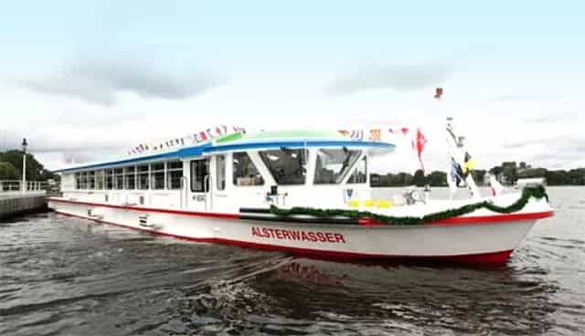 該游船25.5米長、5.36米寬,總重72噸,速度可達8節,推進動力功率為100kW級,由德國Proton Motor 公司提供的2臺48kW電池系統組成,采用35MPa高壓儲氫技術,具備12個氫燃料儲罐,一次可攜帶氫燃料50kg ,可連續運行2至3天。該船的成功運行證明了氫燃料電池的可靠性。