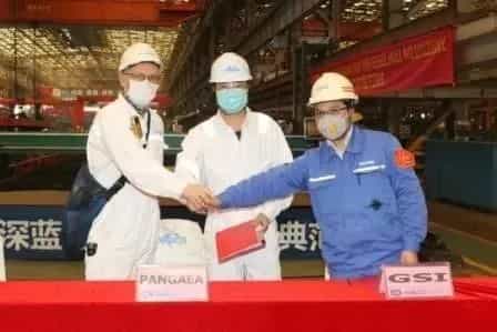 2月26日,中國船舶集團所屬廣船國際為美國PANGAEA公司建造的9.5萬噸冰區散貨船首制船順利開工。該船為廣船國際在疫情期間開工的首艘船。PANGAEA監造組余小平與DNVGL船級社Krzysztof Kurek,及PANGAEA項目經理何永才分別代表三方在開工證明文件上簽字。