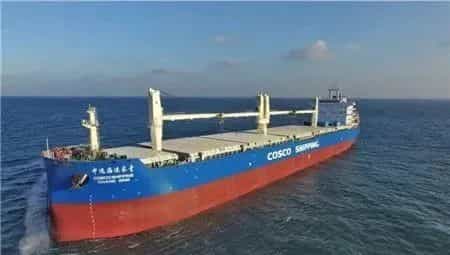 “中遠海運長青”輪總長201.8米,型寬32.26米,型深19.3米,結(jié)構(gòu)吃水13.3米,航速13.5節(jié),續(xù)航能力22000海里,懸掛五星紅旗,入中國船級社。