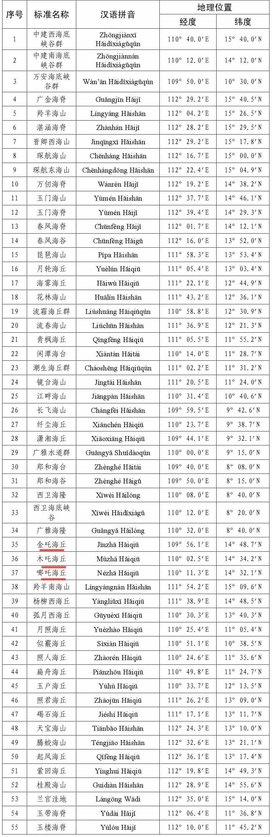 我國公布南海部分島礁和海底地理實體標準名稱,注意第二頁!