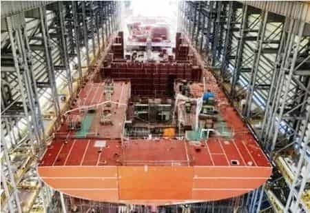 據悉,希臘CAPE公司2700箱集裝箱船3#船H5552是公司第一批在室內船臺總組的產品之一。該船機艙吊裝成型,標志著室內船臺已具備完整的總組和總裝能力。室內船臺,不僅大大提升了龍穴廠區的造船能力,也改善了造船生產環境、提升了產品建造質量,完美解決了長期困擾生產的雨季問題,得到船東的肯定。