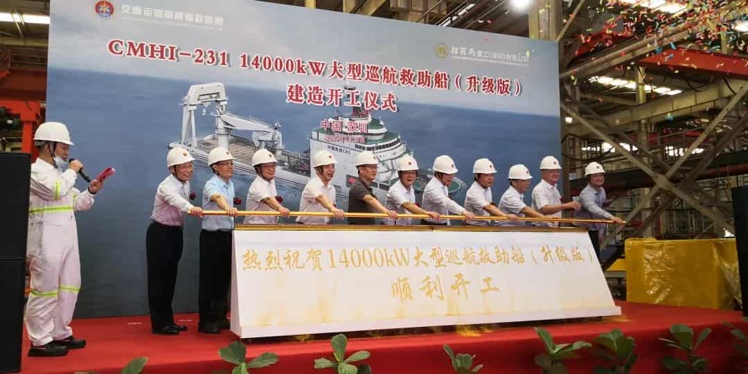 7月28日,由中國船舶集團有限公司旗下上海船舶研究設計院(SDARI)為交通運輸部南海救助局研發設計的14000千瓦大型巡航救助船(升級版)開工儀式在招商局孖州島基地舉行。這是中國建造的第一艘升級版大型巡航救助船,將成為我國履行南海水上遇險人員、船舶和航空器搜尋救助,參與全球海上搜救和國際救援行動,配合維護國家海洋權益等職責的新利器。