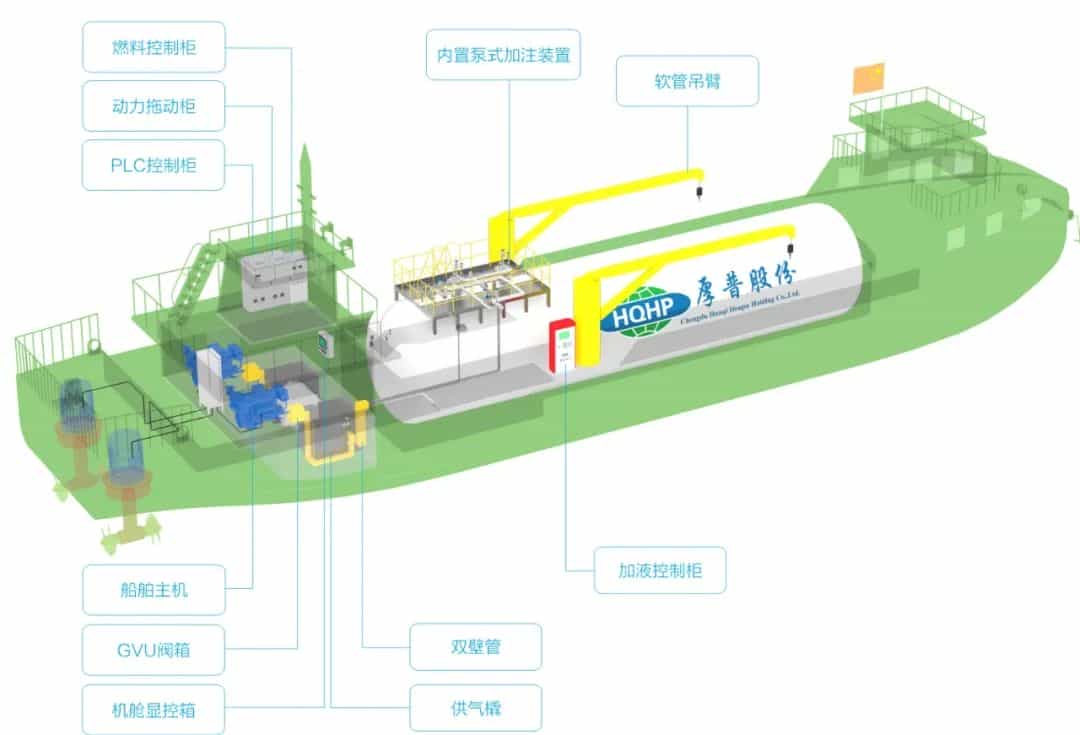珠港西江能源01號“油氣合一”加注躉船由厚普股份設計并提供相關產品,是廣東省首個國家級水運試點項目,采用LNG躉船建站模式,具有加氣量大、安全性高、建站靈活、可同時對船進行加油加氣等特點。