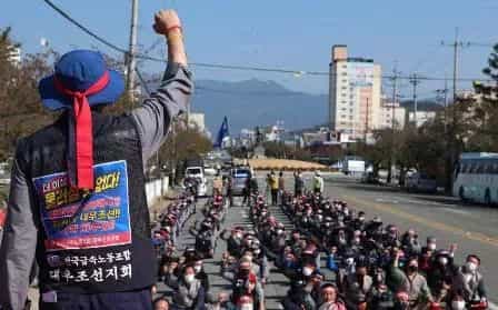 敦促公正重審KDDX項目,大宇造船工會舉行示威集會