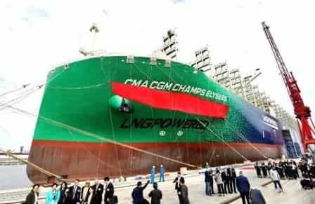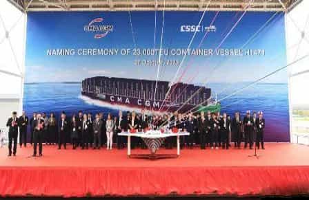 作為法國達飛輪船的聯合賣方,中國船舶集團旗下江南造船和中國船舶工業貿易有限公司建造的23000TEU超大型雙燃料集裝箱船“達飛香榭·麗舍(CMA CGM CHAMPS ELYSEES)”號于10月27日正式命名交付。