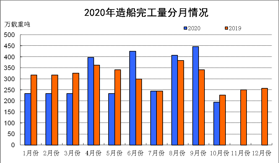 2020年1~10月份,我國新船訂單降幅明顯收窄,完工量和手持船舶訂單量下降,重點監測企業主要經濟指標同比下降。