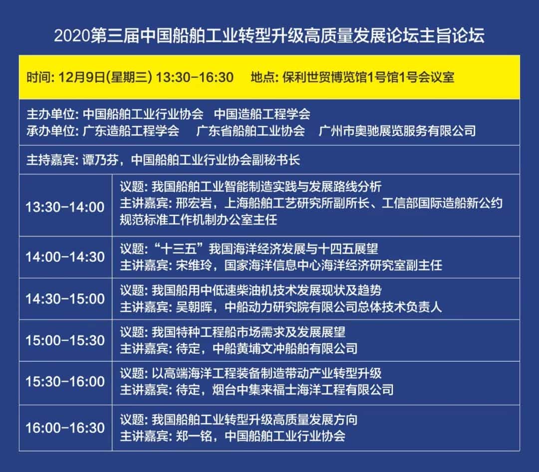 議程公布 | 2020第三屆中國船舶工業轉型升級高質量發展論壇