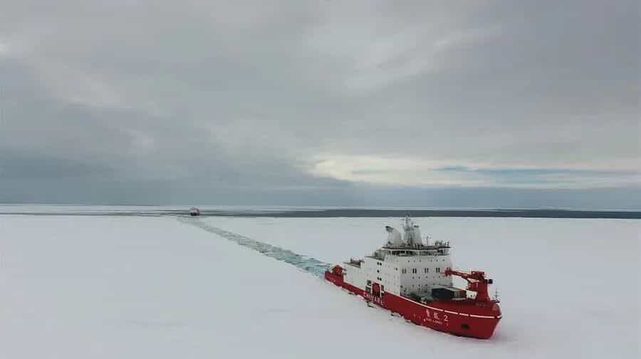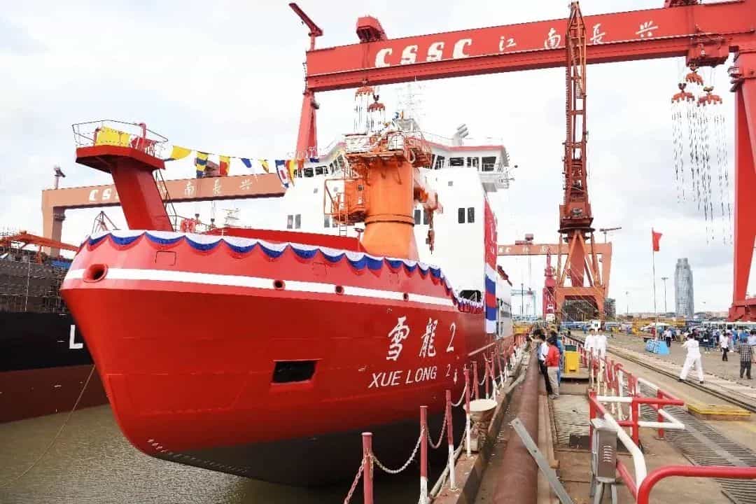 “雪龍2”號隸屬于自然資源部中國極地研究中心,由中國船舶集團旗下第七〇八研究所聯合設計,江南造船建造。該船總長122.5米,型寬22.32米,設計吃水7.85米,設計排水量13996噸,航速12~15節,續航力2萬海里,載員90人,自持力60天,可同時搭載2架直升機。
