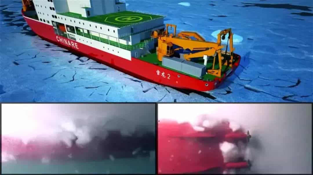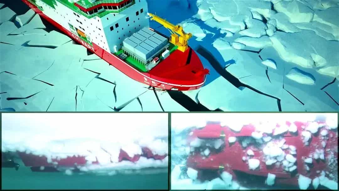 該船融合了國際新一代考察船的技術、功能需求和綠色環保理念,采用國際先進的船艏船艉雙向破冰船型設計,具備全回轉電力推進功能和沖撞破冰能力,艏向能以2~3節的航速在冰厚1.5米+雪厚0.2米的條件下連續破冰航行,艉向可突破極區20米當年冰冰脊,并可實現極區原地360°自由轉動。