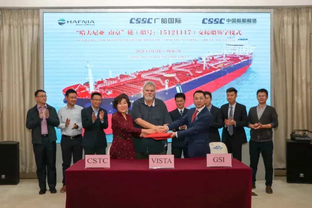 1月5日,由中國船舶集團旗下廣船國際為VISTA Shipping建造的75000載重噸化學品/成品油船6號船“HAFNIA NANJING(哈夫尼亞·南京)”號簽字交船,標志著廣船國際為該公司建造的7.5萬噸化學品/成品油船系列船圓滿收官。