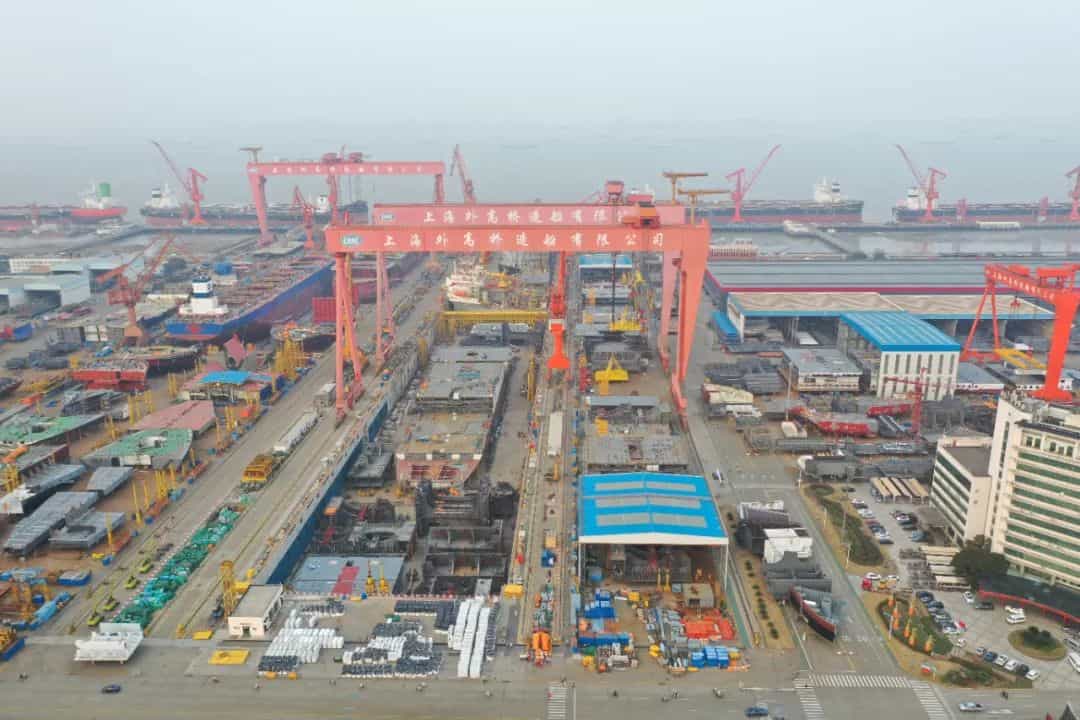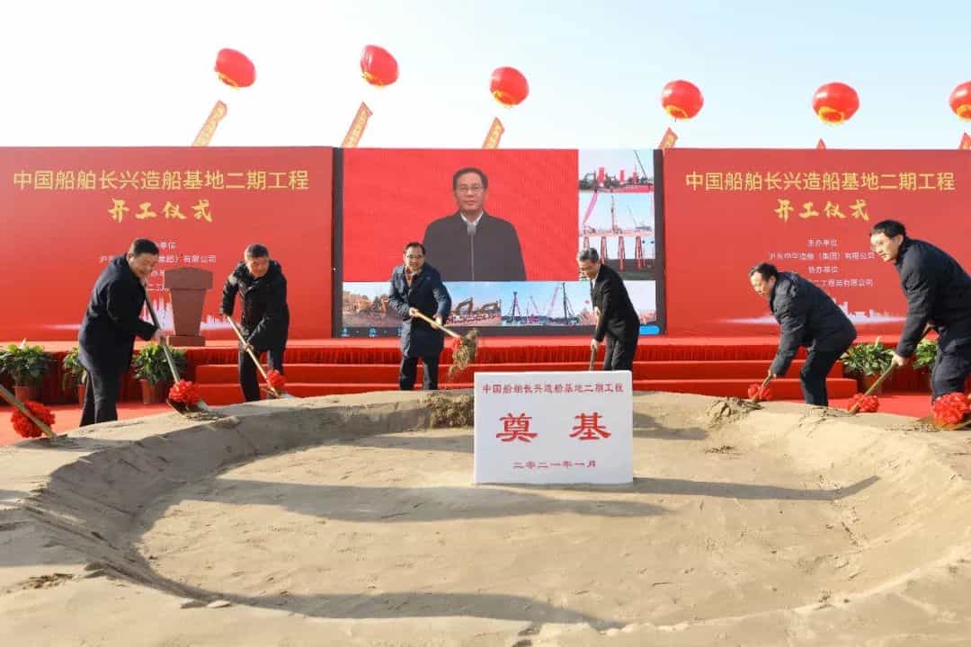 中國船舶長興造船基地二期工程開工儀式于1月4日在上海長興島舉行,標志著中國船舶集團旗下滬東中華造船(集團)有限公司整體搬遷項目(滬東中華新廠區)建設全面啟動。滬東中華新廠區選址位于上海長興島南岸沿線,面積為214.6公頃,總投資180億元,由中國船舶集團旗下中船第九設計研究院工程有限公司負責總體設計。