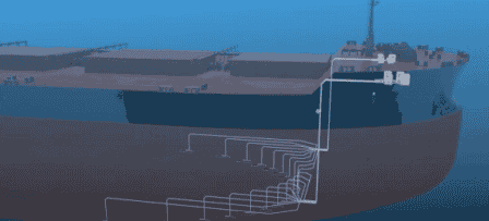 該項空氣潤滑技術被應用于32.5萬載重噸Guaibamax型超大型礦砂船(VLOC)“維多利亞海洋號(Sea Victoria)”,安裝在甲板上的10臺壓縮機將空氣注入船體底部的20臺裝置中。