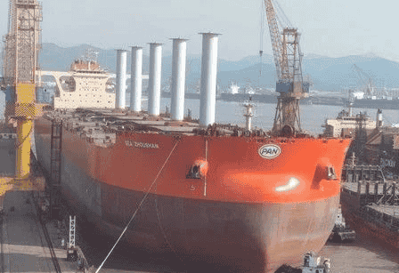 采用空氣潤滑技術是淡水河谷“生態航運計劃”的一部分,該計劃旨在助力公司應對減少碳排放的挑戰,這與國際海事組織(IMO)的探討方向相一致。為了實現“生態航運計劃”,淡水河谷已經在今年5月啟用世界上首艘配備旋翼帆的Guaibamax型VLOC“SEA ZHOUSHAN”號。該船同樣由新時代造船建造,在太平洋海洋工程(舟山)有限公司完成了旋翼帆安裝,計劃于7月底抵達巴西。