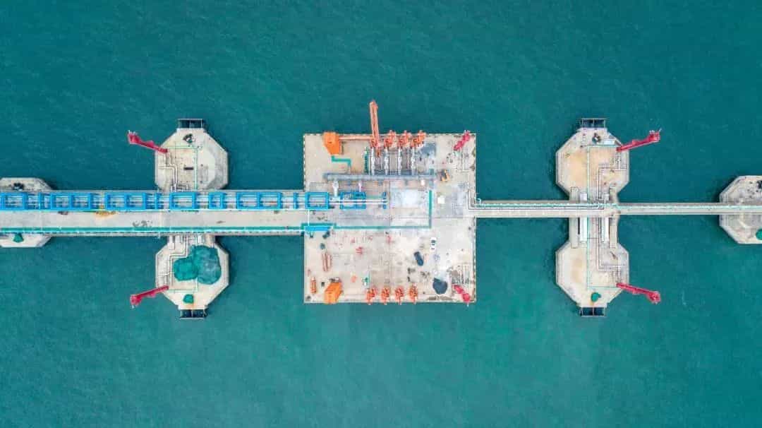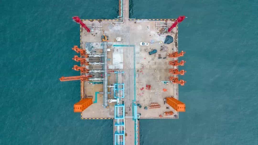 欽州港30萬噸級油碼頭工程為重力墩式結構,碼頭總長564.3米,由1個工作平臺、2個靠船墩、6個系纜墩、1個輔助工作平臺組成,可同時靠泊1艘30萬噸級和1艘10萬噸級原油船舶,碼頭結構為廣西同類項目之最。該項目采用4臺16英寸裝卸臂進行卸船作業,通過一根DN1200管道實現原油船和420儲備庫的無縫對接,單側泊位設計通過能力986萬噸/年,碼頭擴容后可接卸原油約2000萬噸/年。
