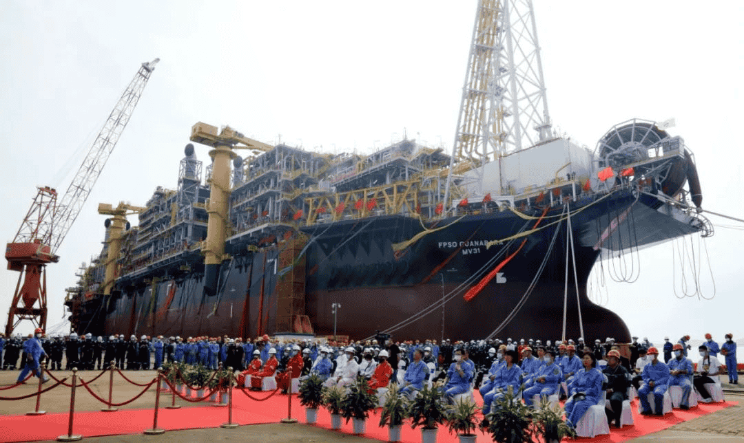 8月12日,中國船舶大船集團舉行為日本三井海洋開發公司(MODEC)改裝的Guanabara MV31浮式生產儲卸油船(FPSO)交船儀式。