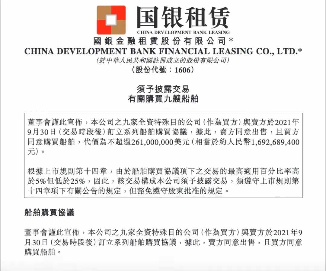 國銀租賃公告稱,此次訂立的船舶購買協議有利于充分發揮各方優勢,有益于增加國銀租賃在船舶市場的市場份額,符合該公司業務發展戰略。