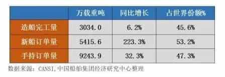 中國船舶工業協會(CANSI)報告指出,今年前9個月新訂單按噸位計算成長超過200%。該報告顯示,中國造船企業造船完工量、新承接船舶訂單量和手持船舶訂單量三大造船指標增幅明顯,繼續保持全球第一的市場份額。