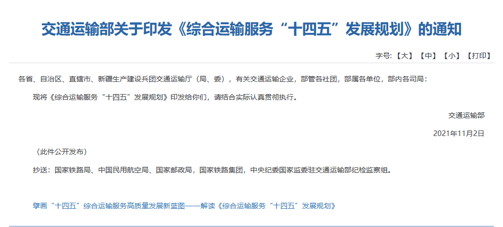 規(guī)劃明確,深入推進(jìn)多式聯(lián)運(yùn)發(fā)展,推動(dòng)鐵水、公鐵、空陸等聯(lián)運(yùn)發(fā)展,加強(qiáng)鐵路(高鐵)快運(yùn)、航空貨運(yùn)能力建設(shè),創(chuàng)新“干線多式聯(lián)運(yùn)+區(qū)域分撥”發(fā)展模式,深入推進(jìn)多式聯(lián)運(yùn)示范工程建設(shè),構(gòu)建空中、水上、地面與地下融合協(xié)同的多式聯(lián)運(yùn)網(wǎng)絡(luò)。規(guī)劃提出,實(shí)施多式聯(lián)運(yùn)提速行動(dòng),到2025年,建設(shè)120項(xiàng)多式聯(lián)運(yùn)示范工程。大規(guī)模推廣應(yīng)用鐵路專用平車、滾裝船等專用載運(yùn)機(jī)具;推進(jìn)江海直達(dá)船型研發(fā)和推廣應(yīng)用;加快全國(guó)多式聯(lián)運(yùn)公共信息互聯(lián)互通,推動(dòng)鐵路、公路、水運(yùn)、航空以及海關(guān)、市場(chǎng)監(jiān)管等信息交互共享。