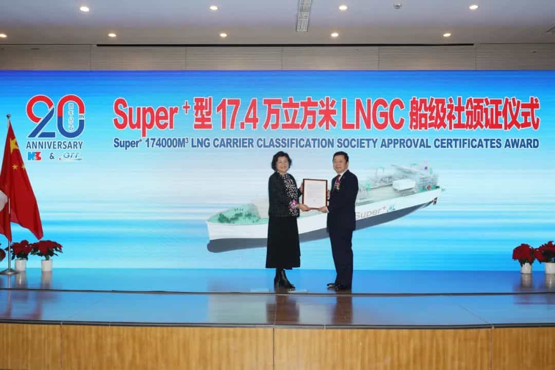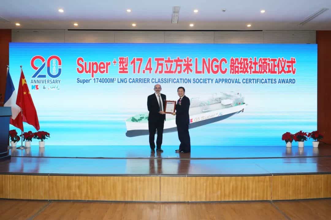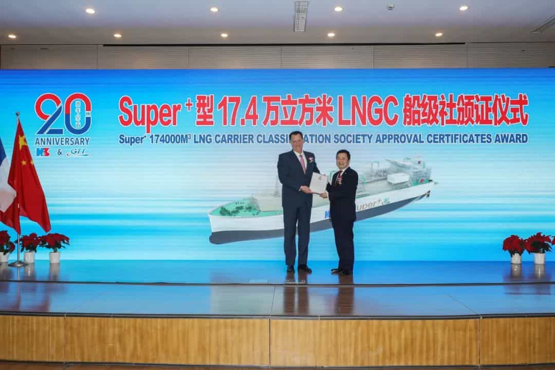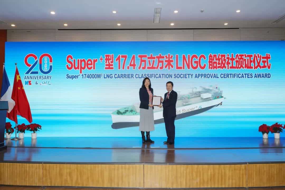 12月16日,由中國船舶集團有限公司旗下滬東中華造船(集團)有限公司與法國GTT公司聯合研發的全球最新一代“長恒系列”17.4萬立方米液化天然氣(LNG)運輸船獲得美國船級社(ABS)、法國船級社(BV)、英國勞氏船級社(LR)、DNV等4家國際著名船級社頒發的船型設計通用認可(GDA)、入級預先認可(PCA)等證書。