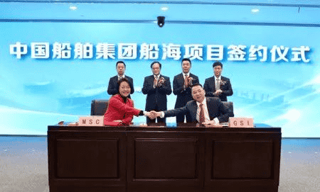 此外,此次簽約的船舶建造項(xiàng)目還包括:比利時(shí)CMB公司與青島北海船舶重工有限責(zé)任公司、中船貿(mào)易聯(lián)合簽署的2艘21萬噸氨燃料預(yù)留散貨船項(xiàng)目;華夏金融租賃有限公司與中船澄西船舶修造有限公司、中船貿(mào)易聯(lián)合簽署的8艘63500噸散貨船項(xiàng)目;德翔海運(yùn)有限公司與上海外高橋造船有限公司、中船貿(mào)易聯(lián)合簽署的2艘7000TEU集裝箱船項(xiàng)目;SCHOELLER集團(tuán)旗下新加坡AAL公司與中船黃埔文沖船舶有限公司、中船貿(mào)易聯(lián)合簽署的4+2艘32000噸多用途重吊船項(xiàng)目;韓國(guó)H-Line航運(yùn)公司與廣船國(guó)際有限公司、中船貿(mào)易聯(lián)合簽署的2艘7000車雙燃料汽車運(yùn)輸船(PCTC)項(xiàng)目;MSC地中海航運(yùn)集團(tuán)旗下渡輪運(yùn)營(yíng)商GNV公司與廣船國(guó)際簽署的2艘1500客/3100米車道豪華客滾船項(xiàng)目,以及中國(guó)船舶(香港)航運(yùn)租賃有限公司與江南造船(集團(tuán))有限責(zé)任公司簽署的1+1艘超大型LNG運(yùn)輸船建造意向書。