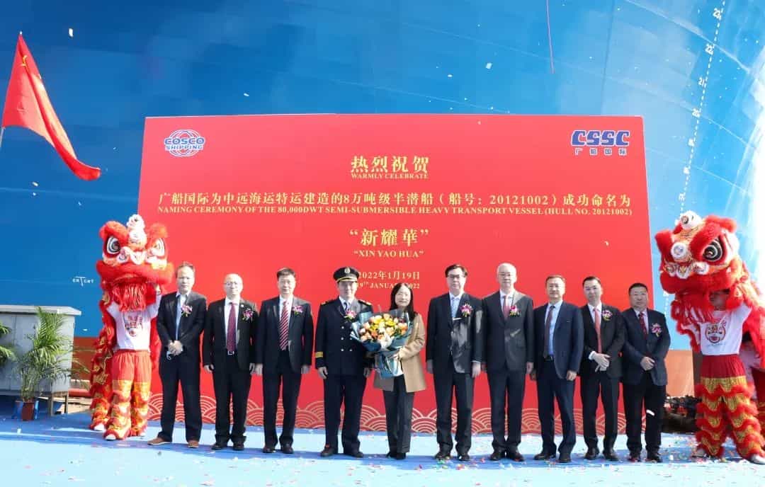 1月19日,由中國船舶集團有限公司旗下廣船國際有限公司為中遠海運特運建造的8萬噸半潛船“新耀華”號命名交付。該船載重能力僅次于廣船國際2016年建造交付的國內最大半潛船“新光華”號,是助力我國海洋強國建設又一員猛。