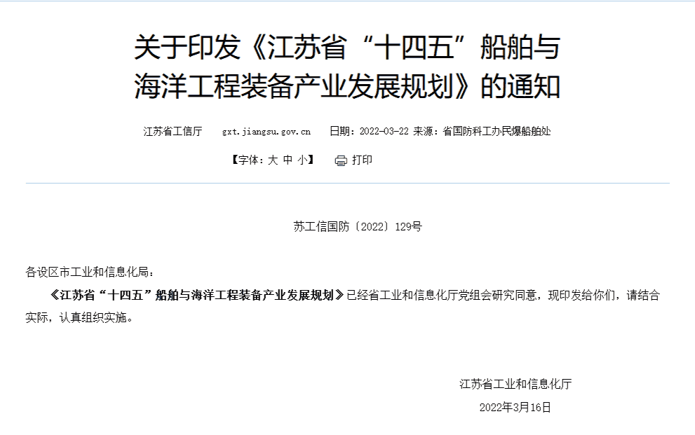 《江蘇省“十四五”船舶與海洋工程裝備產業發展規劃》發布
