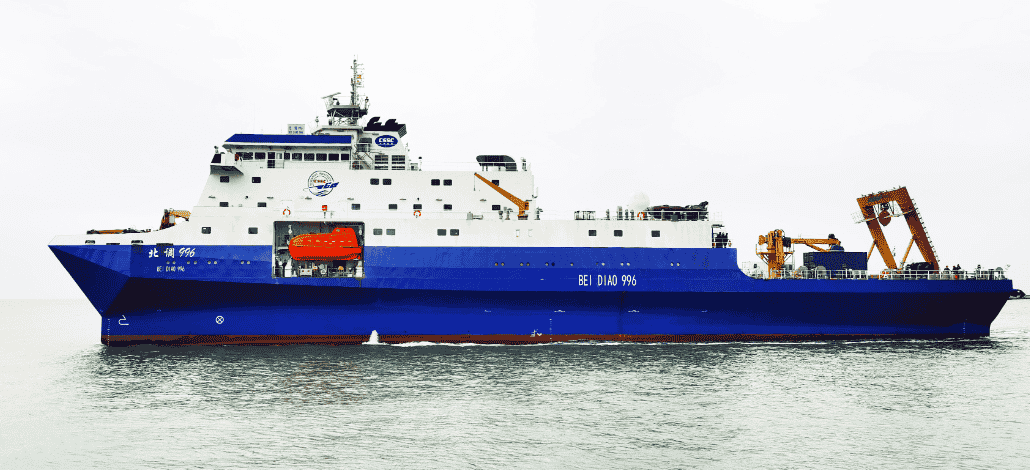 “北調(diào)996”全船采用定量聲學(xué)設(shè)計、直流組網(wǎng)電力推進(jìn)模式,具備DP-1動力定位能力,配備了萬米絞車、大型A架、無人機(jī)平臺等完備的試驗設(shè)備設(shè)施,可在除兩極外的無限航區(qū)執(zhí)行各種科研試驗、環(huán)境調(diào)查、海洋科考、綜合保障等任務(wù)。