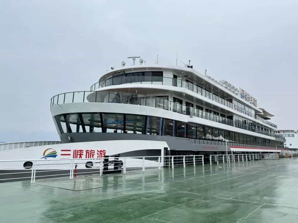 在三峽壩區(qū)完成首航的全電動游船“長江三峽1”號設計總長100米,型寬16.3米,型深4米,可容納1300人,配備了寧德時代7500千瓦時的船用動力電池,一次充電可續(xù)航100公里,每年可減少有害氣體排放1660噸。