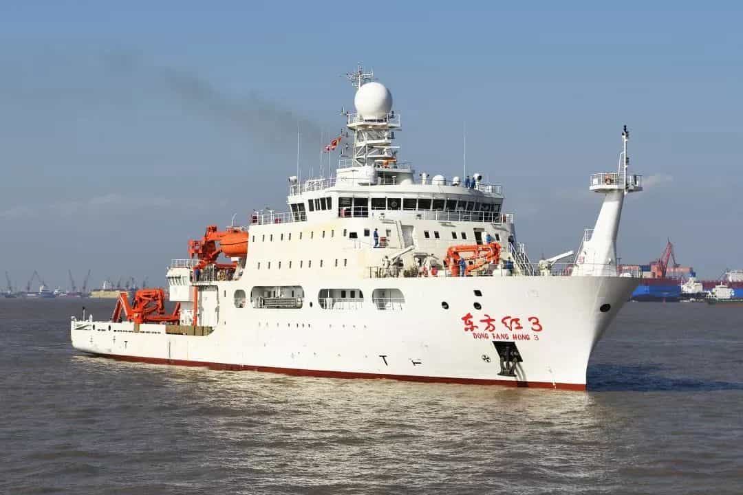 “東方紅3”號是我國自主創新研發的新一代深海大洋綜合科學考察實習船,可開展高精度的全海深和空間一體化的海洋綜合科學考察,是我國當時排水量最大,定員最多,經濟性、振動噪聲、電磁兼容等指標要求最高,作業甲板和實驗室面積利用率最大,綜合科考功能最完備的國際頂尖海洋綜合科考實習船。