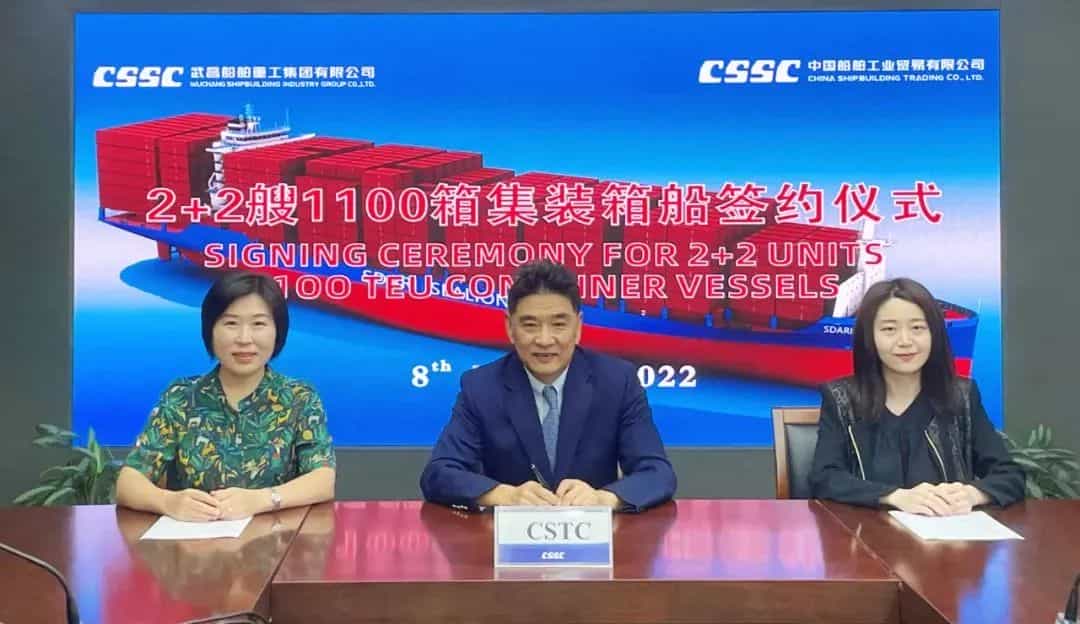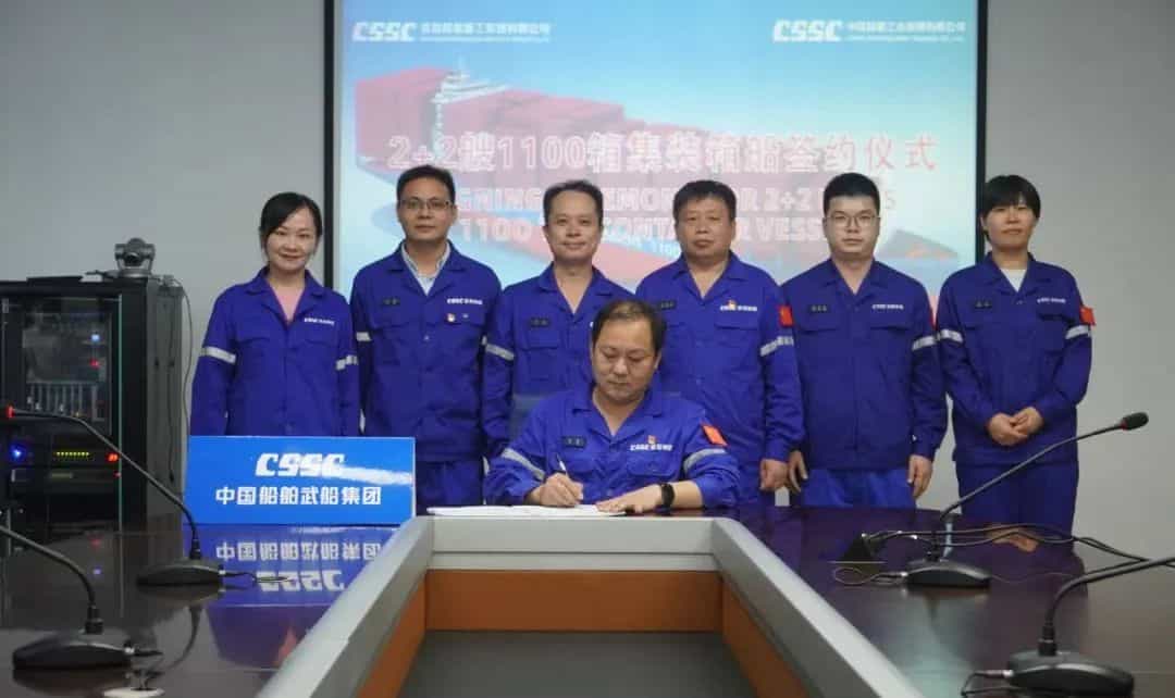 日前,中國(guó)船舶工業(yè)貿(mào)易有限公司聯(lián)合武昌船舶重工集團(tuán)有限公司,與希臘船東以“云簽約”形式,簽訂了2+2艘1100TEU集裝箱船建造合同。