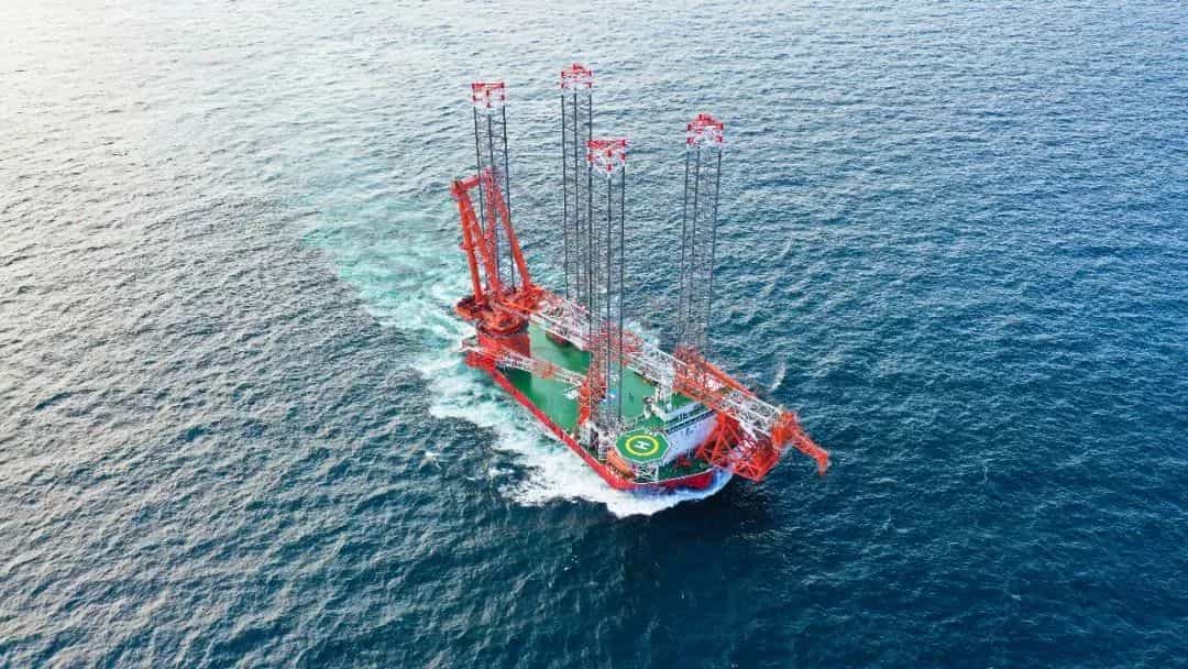 這是我國首艘符合第四代海風裝備功能標準,滿足自升、自航、深遠海等一體化綜合施工作業要求的風電安裝平臺。