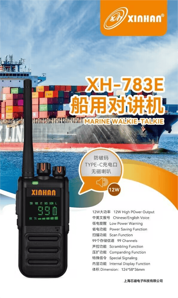 公司憑借多年從事船舶、港口、造船廠等銷售海事對講機以及自主品牌“芯涵科技”銷售,得到廣大船務、船東的認可及好評,并榮獲無線電管理局認證頒發的“銷售無線電發射設備-規范企業”和“無線電固定臺(站),通信網絡技術設計資質”企業。