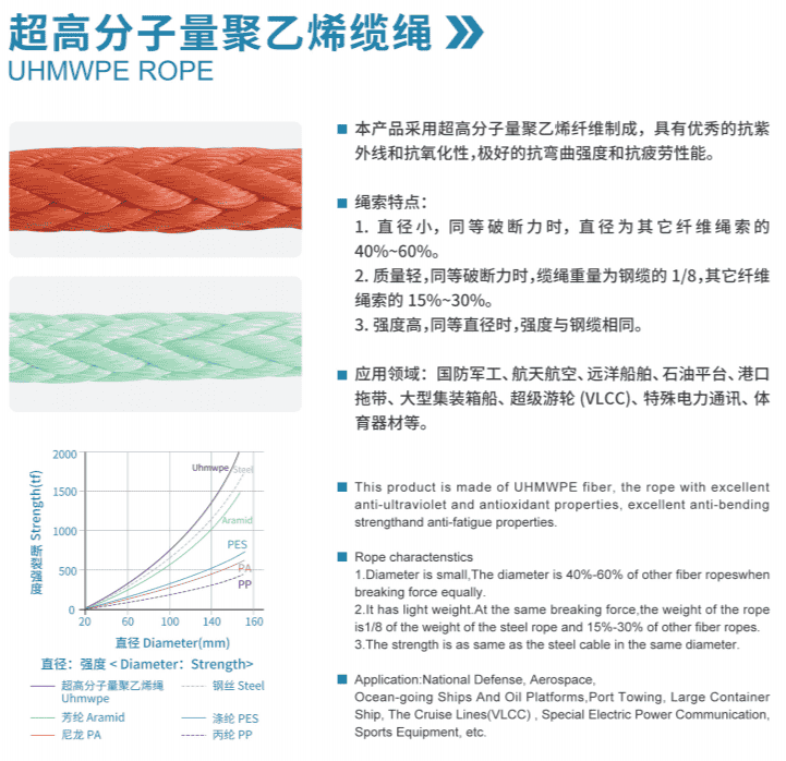 公司主要產品有:錦綸、丙綸、滌綸、超高分子量聚乙烯的三股繩系列、八股繩系列、十二股繩系列、編織繩系列、安全阻燃網、帳篷等,廣泛應用于遠洋運輸、海洋石油勘探平臺、海洋捕撈、造船、港口碼頭等行業。