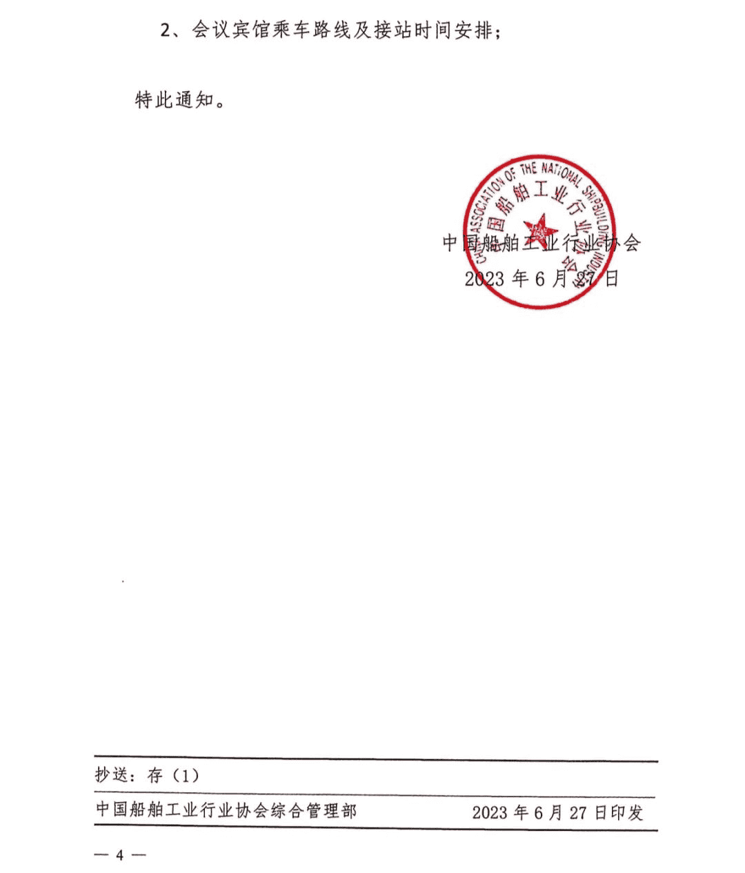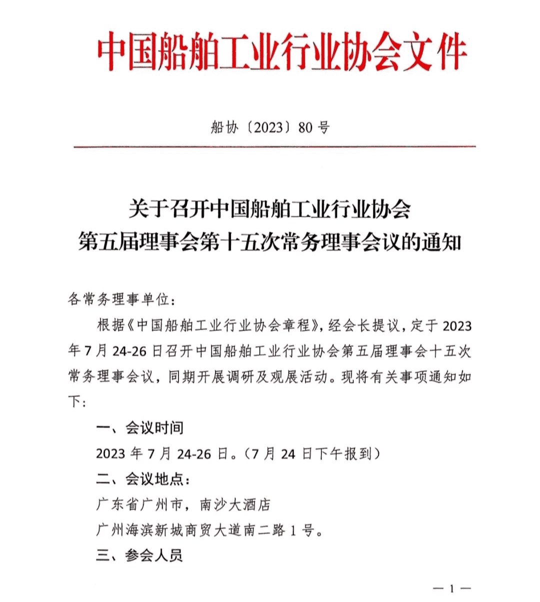 關于召開中國船舶工業行業協會第五屆理事會第十五次常務理事會議的通知
