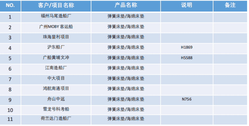公司主要產品有:高端記憶海綿床墊、乳膠床墊、彈簧床墊、椰棕床墊等,應用于家庭、酒店、醫院、宿舍、船舶等,公司專做品牌代工,床墊遠銷海內外,深受國內外床墊經銷商、電商的青睞;床墊年產能力500,000張。