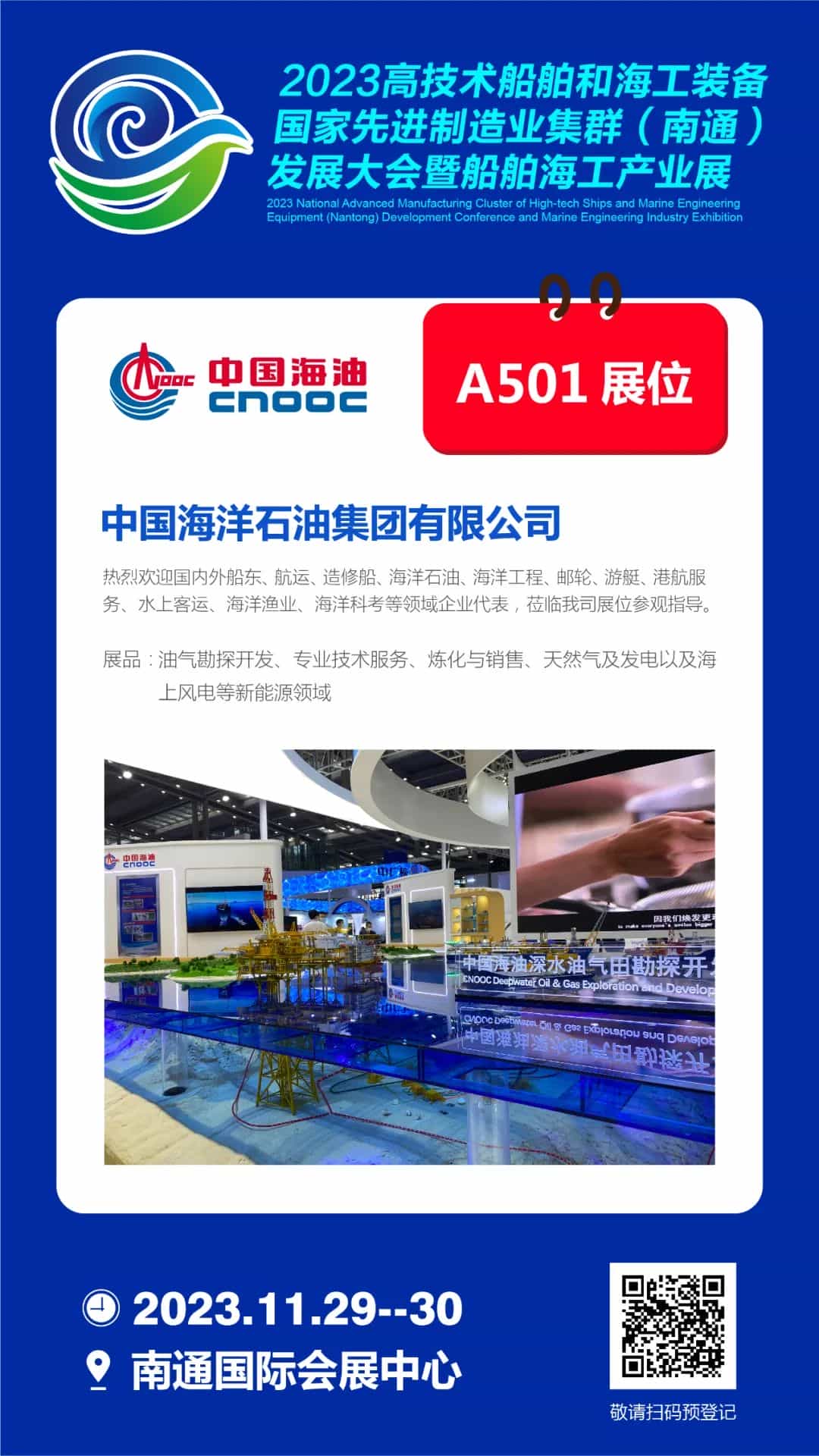 2023年11月29-30日,南通國際會展中心A501展位,中國海油與全球船舶人相約南通,走進世界級船舶海工先進制造業集群!
