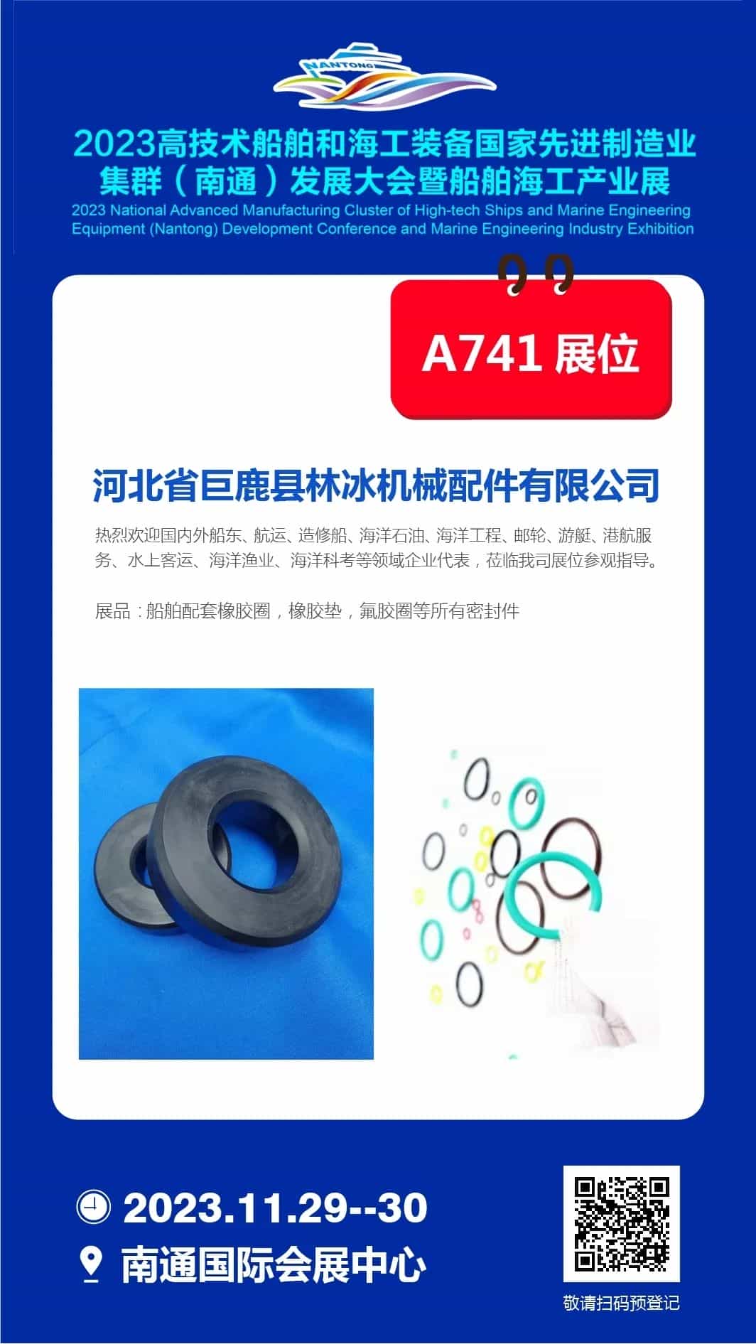 河北省邢臺市巨鹿縣林冰機械配件有限公司將亮相A741展位,展示船舶配套橡膠圈,橡膠墊,氟膠圈等所有密封件等產(chǎn)品,歡迎船舶人前來參觀洽談!