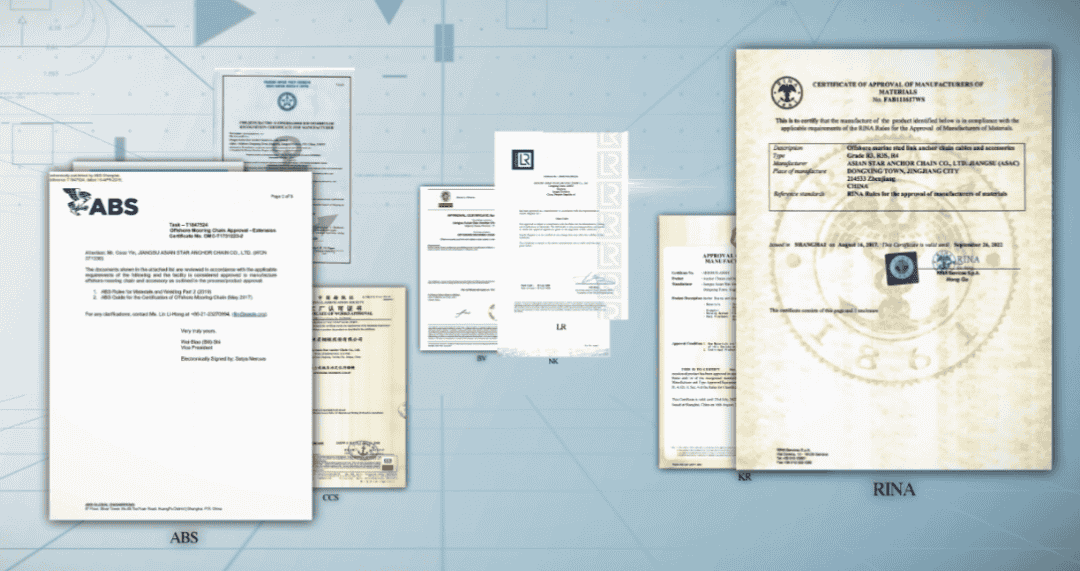 公司作為主要編制單位,參與編制超高強(qiáng)度系泊鏈國(guó)際標(biāo)準(zhǔn)ISO20438、船舶與海洋技術(shù)-有檔錨鏈國(guó)際標(biāo)準(zhǔn)ISO1704,處于世界領(lǐng)先地位,能接受各種非標(biāo)產(chǎn)品定制,滿(mǎn)足不同客戶(hù)的需求。
