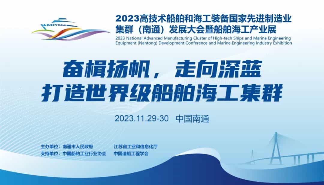 由南通市人民政府、江蘇省工業(yè)和信息化廳主辦的“2023高技術(shù)船舶和海工裝備國家先進(jìn)制造業(yè)集群(南通)發(fā)展大會暨船舶海工產(chǎn)業(yè)展”,將于11月29日-30日在南通國際會展中心隆重召開。