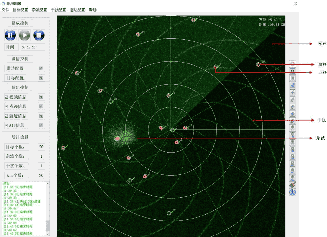 除此之外,本軟件還支持點(diǎn)跡、航跡、AIS等數(shù)據(jù)的模擬仿真,方便用戶(hù)進(jìn)行功能拓展,主要面向高校、科研機(jī)構(gòu)等客戶(hù),支撐雷達(dá)課程教學(xué)、模擬訓(xùn)練、性能測(cè)試等場(chǎng)景。