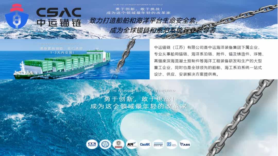中運錨鏈(江蘇)有限公司(簡稱:中運錨鏈)是全球領先的一站式船用錨鏈及海洋工程系泊鏈制造及解決方案供應商。