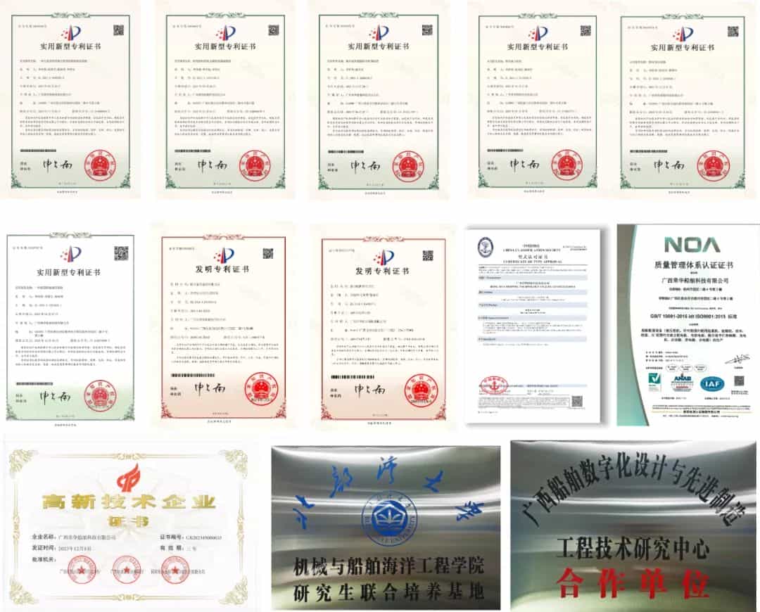 廣西榮華有多年船用配套設備設計、制造、檢驗、安裝及售后服務經驗,擁有多項液壓舵機等船用設備發明專利,已經與國內客戶建立了穩定的合作關系,獲得了包括中船系統內各研究所和船廠、船舶類大專院校和船舶科研院所等一致的信賴與支持。