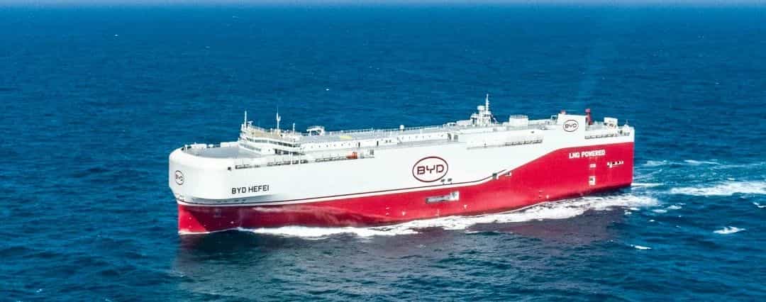比亞迪7000車雙燃料汽車運輸船是廣船國際建造的系列汽車運輸船的“綠色低碳升級版2.0”。