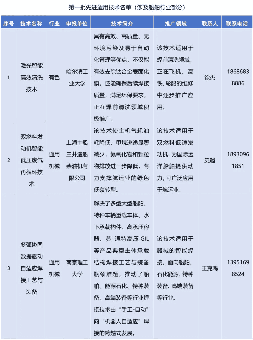 近日,工業和信息化部發布了第一批先進適用技術名單,共有111項技術入選,其中多項技術可在船舶行業推廣。
