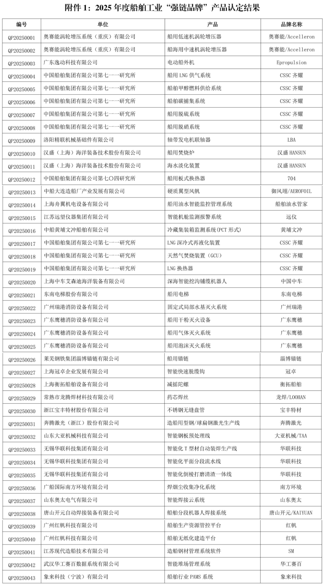 附件1:2025年度船舶工業“強鏈品牌”產品認定結果